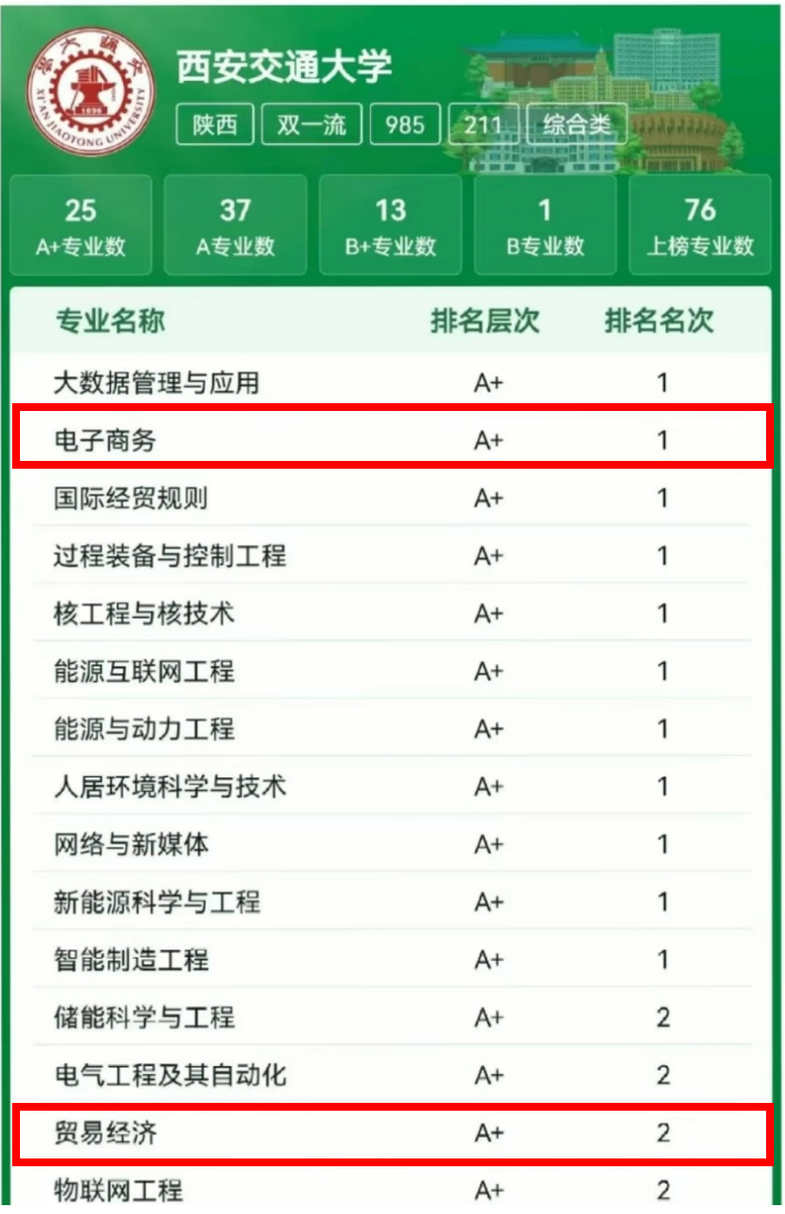 2个专业排名稳居全国前三甲,位列A+!